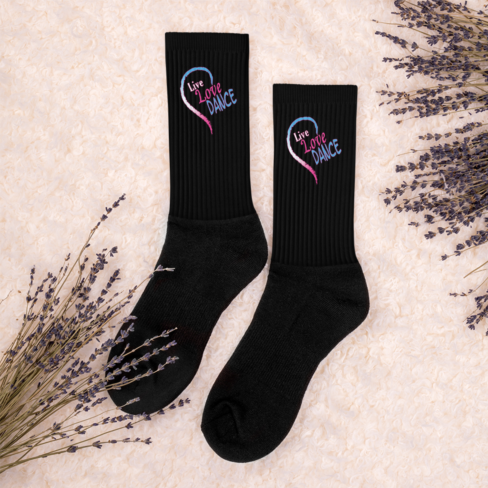 These socks are extra comfortable thanks to their cushioned bottom. The foot is black with artwork printed along the leg with crisp, bold colors that won’t fade.